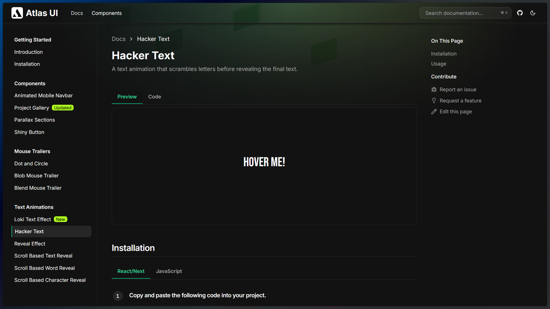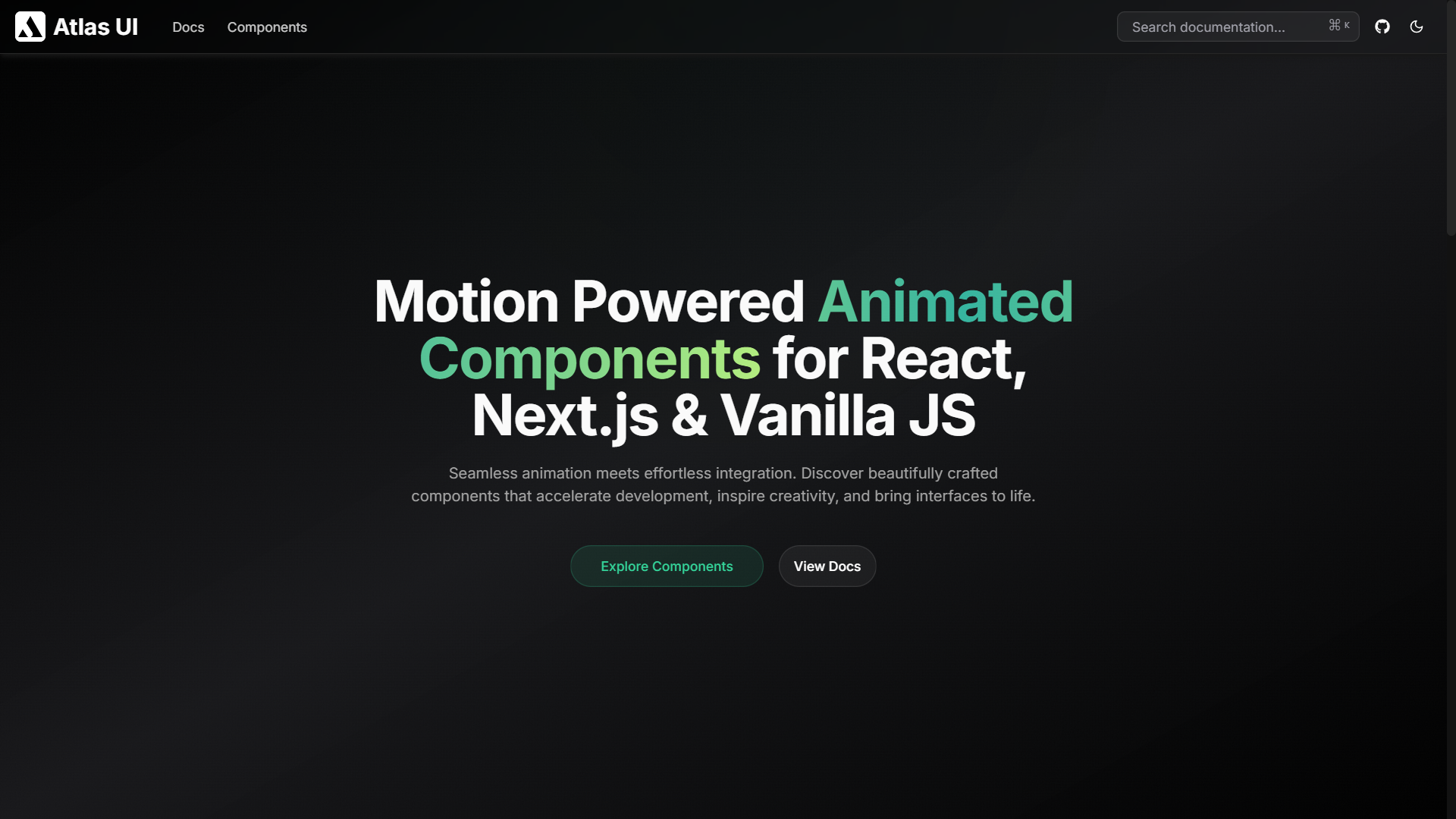 Atlas UI is an open-source library of animated components powered by Motion (previously Framer Motion). It’s designed to help developers build beautiful, fluid and sleek UIs with ease, whether you're using React, Next.js, or Vanilla JavaScript.