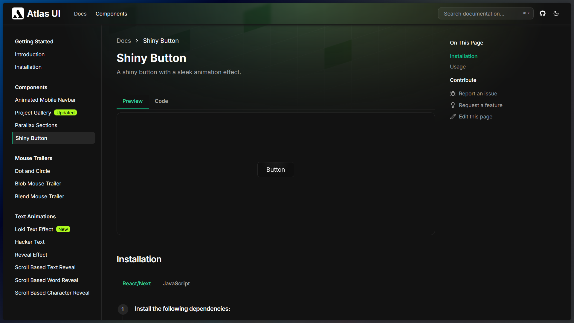 Atlas UI is inspired by libraries like shadcn/ui and Aceternity UI, blending clean, minimal design with expressive motion.