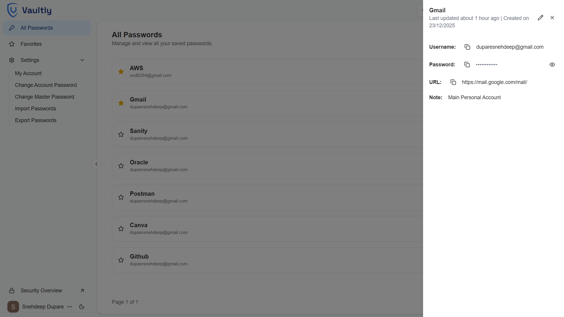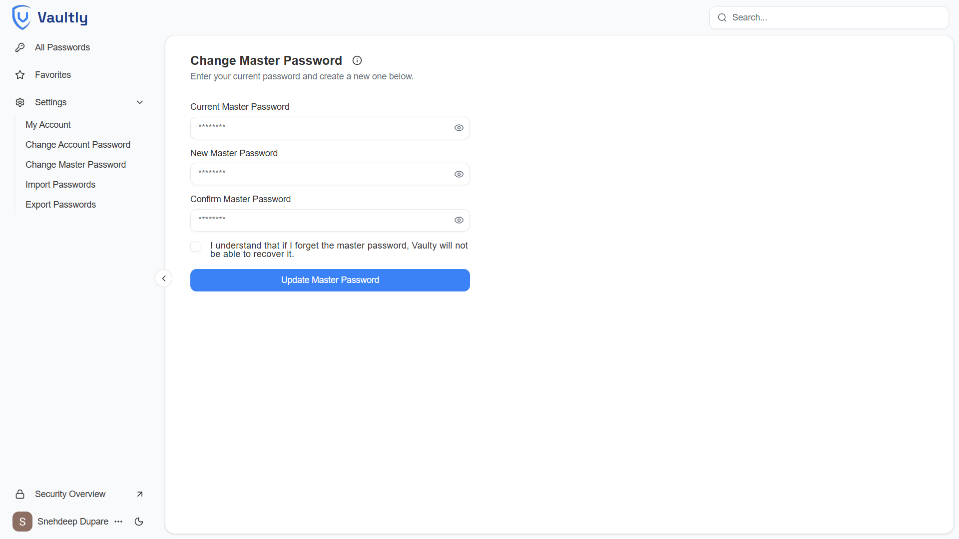 - Zero-Knowledge Architecture: Your master password remains on your device, and all vault data is encrypted locally using it. Only encrypted data is stored, making it impossible for Vaultly to access or decrypt your vault.